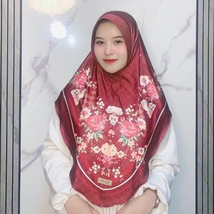 Almerra-Hijab Bergo Printing Premium Jilbab Instan Pad Kerudung Muslim Motif Bunga Flow Panjang Syari