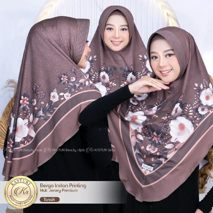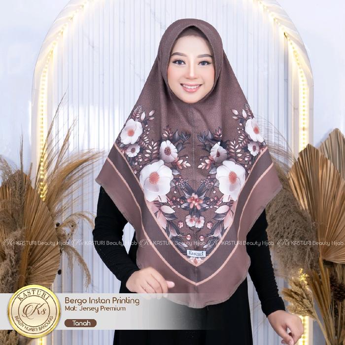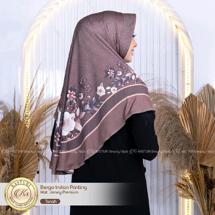 Kasturi Hijab Bergo Instan Daily Motif Printing Bunga 3D Size XL Muslim Kerudung Busa Nyaman Kombinasi