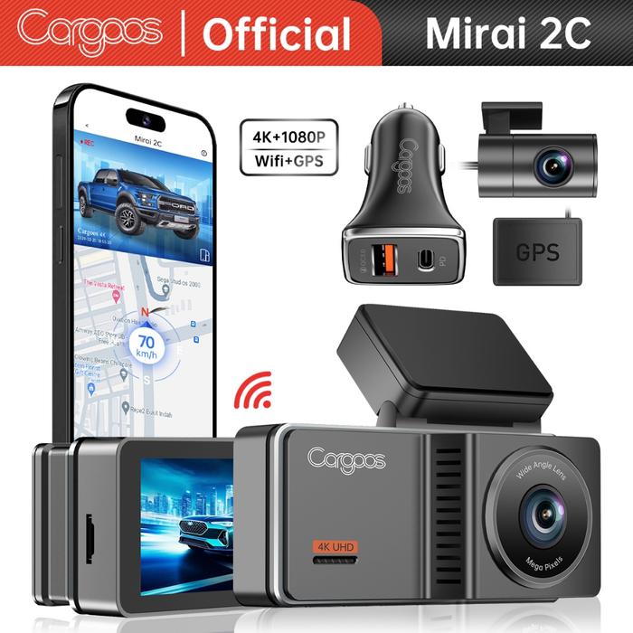 [4K] Cargoos Mirai 2C Dashcam 4K + 1080p GPS Wifi G-Sensor Loop Recording Kamera Dashboard Mobil Car Dash Cam