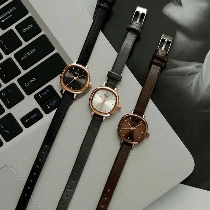 GEDI Jam Tangan Wanita Tali Kulit Anti Air Water Resistant Warna Vintage Black Coklat