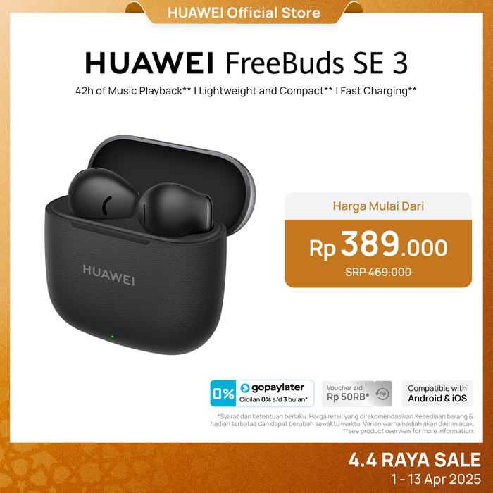 HUAWEI FreeBuds SE 3 Earphone Wireless TWS | Daya Tahan Baterai 42 Jam | Ringan & Ringkas | Pengisian Baterai Cepat