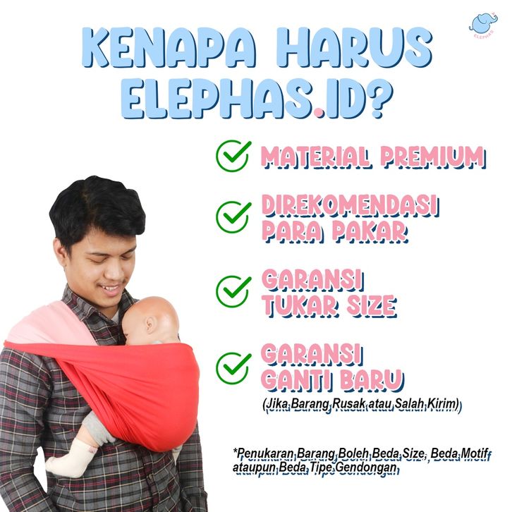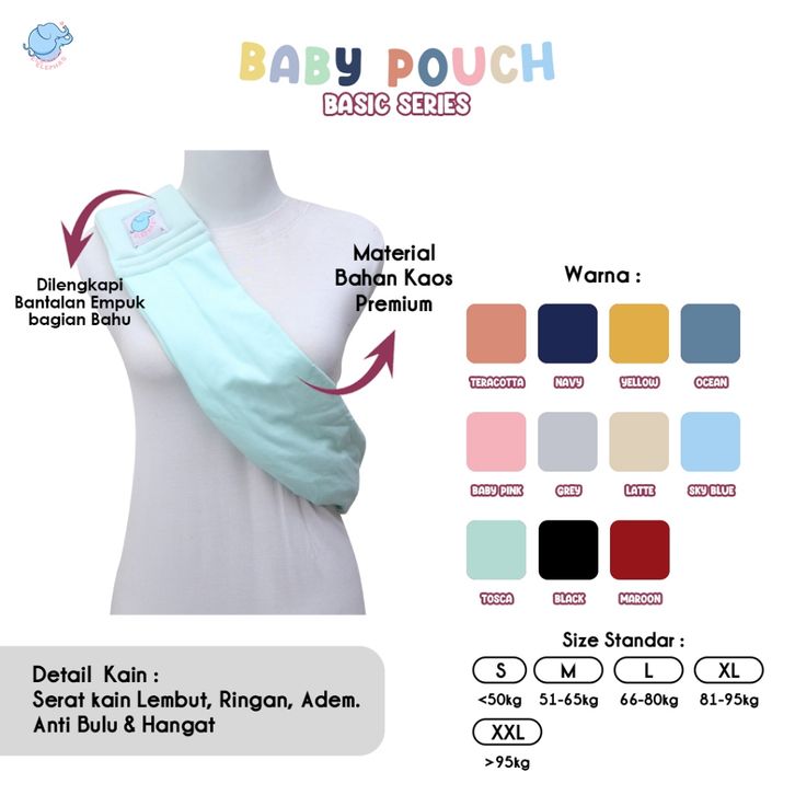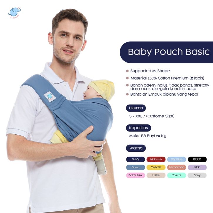TERLAKU Elephas Baby Pouch Basic Series - Gendongan Bayi Gendongan Instan Premium Gendongan Kaos Simple Double