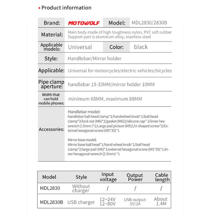Motowolf Phone Holder Motor Spion Stang Charger Motor Fast Charging