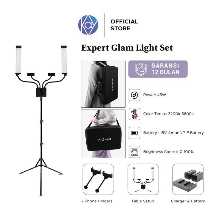 Masami Expert Glam Light Set / Paket Komplit Lampu Ringlight + TriP00D + Tas + Charger Baterai