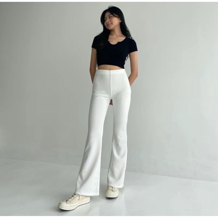 Celana Fit And Flare Pants Cutbray Scuba Streach Pinggang Highwaist Celana Wanita Kekinian