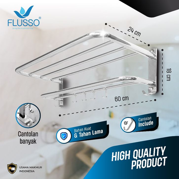 FLUSSO RAK HANDUK XC002-Y30 6BR-2SSN 60CM | Rak Handuk Stainless | Rak Handuk Susun | 453