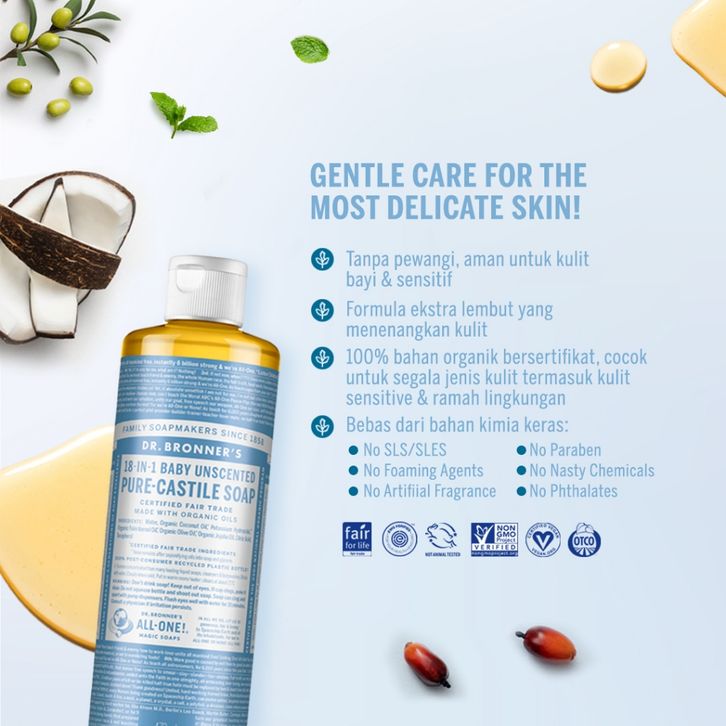 Dr. Bronner's Sensitive Skin Sabun Cair Organik Unscented Pure Castile 946mili
