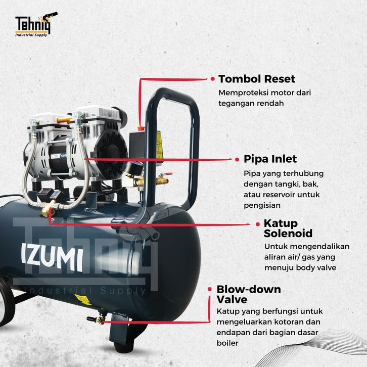 KOMPRESOR ANGIN LISTRIK 50 LITER NLG OIL LESS OL-1390SS-50 / IZUMI AIR COMPRESSOR OIL-LESS OL-1390SS-50