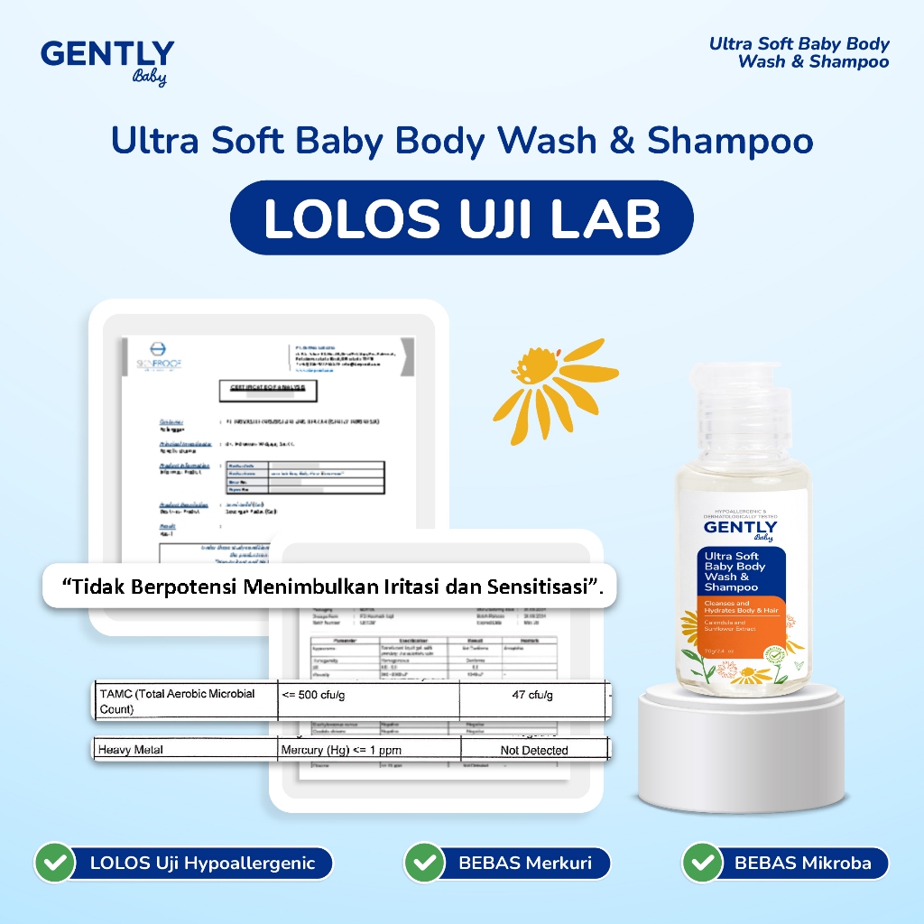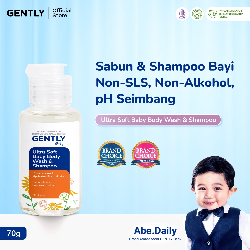 GENTLY ULTRA SOFT BODY WASH & SHAMPOO | 70 ML SABUN PEMBERSIH BADAN DAN RAMBUT BAYI & ANAK | NON SLSSLES