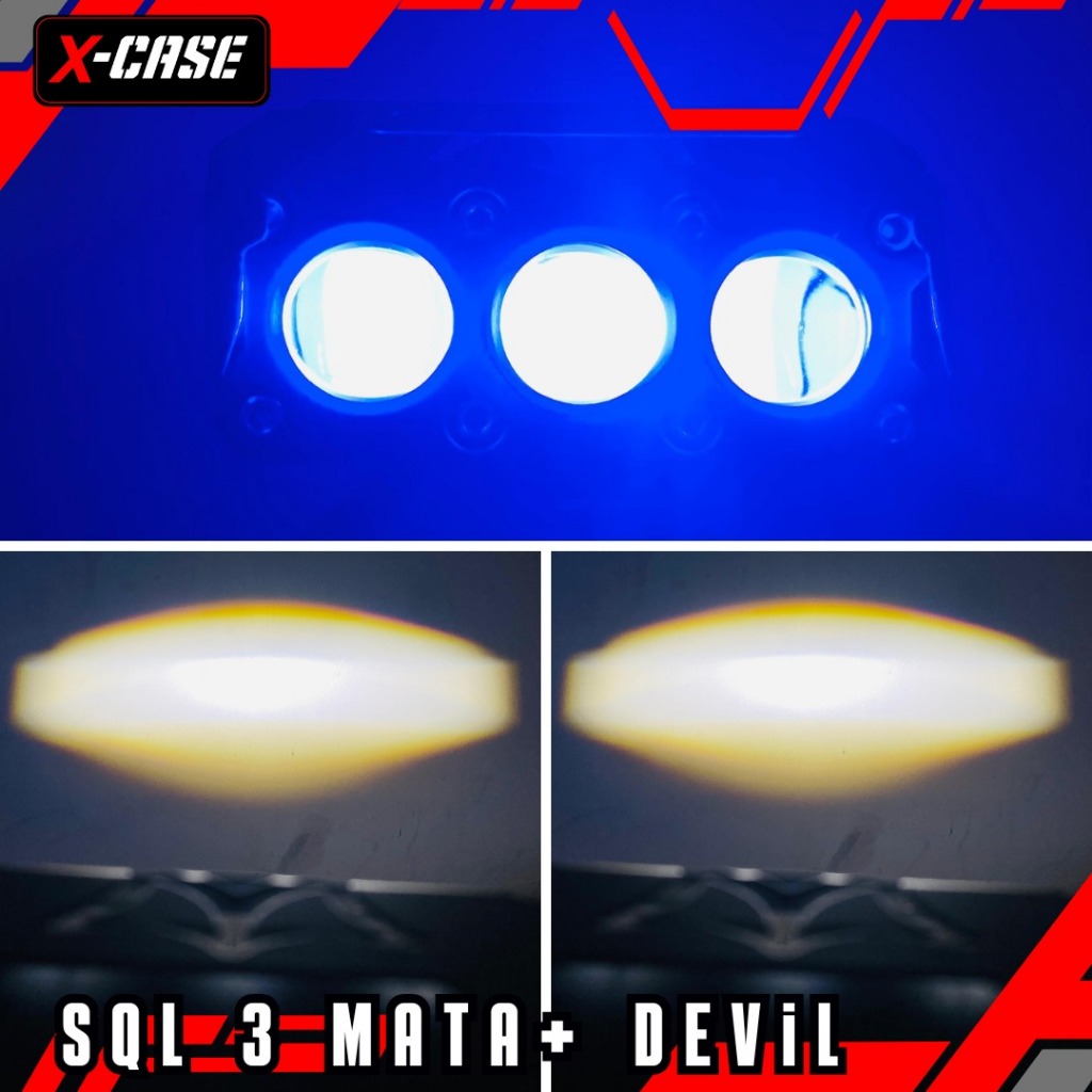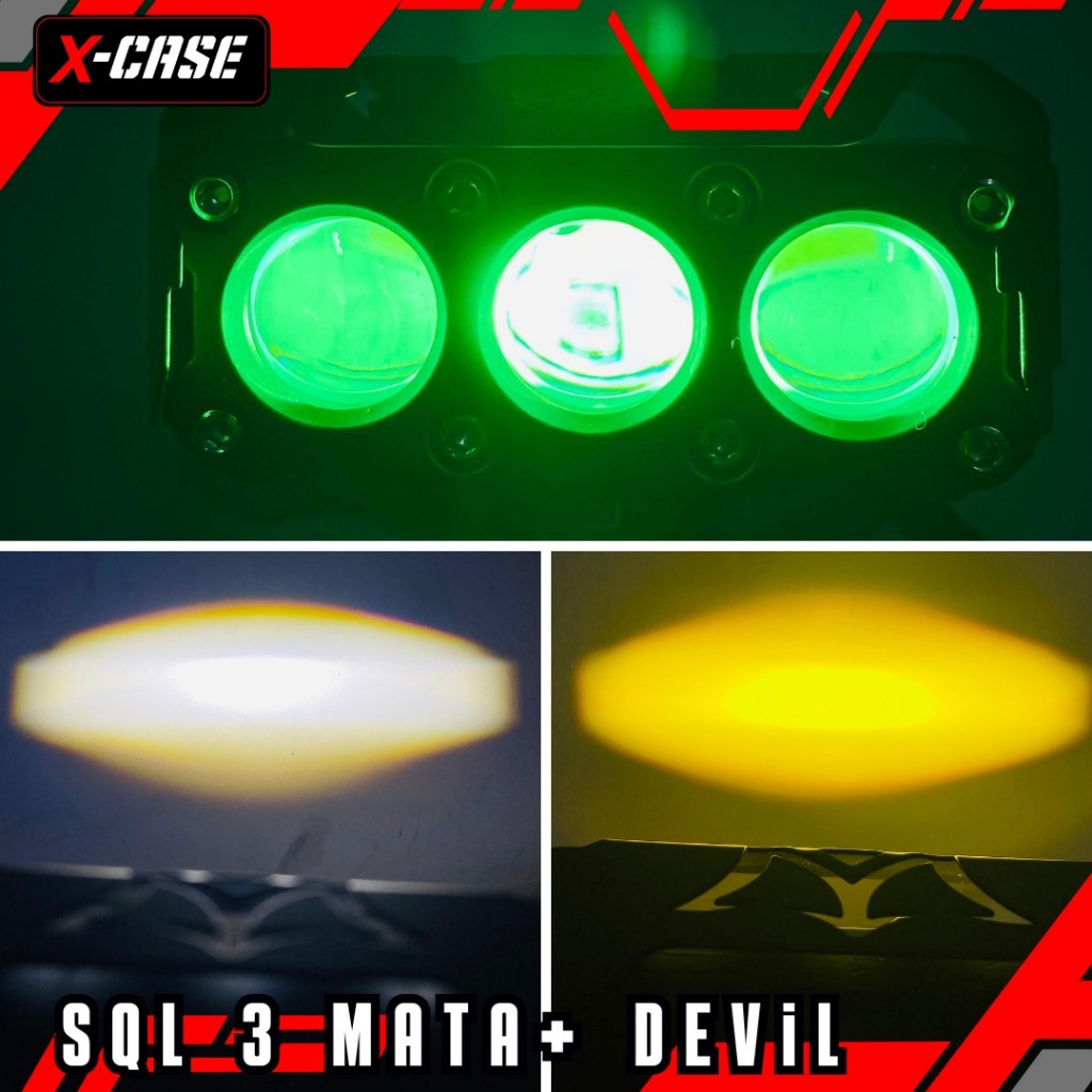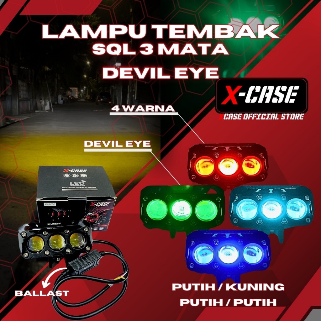 X-CASE LAMPU TEMBAK DEVIL EYE 8030 SQL 3 MATA PUTIH KUNING DAN PUTIH PUTIH 45 WATT