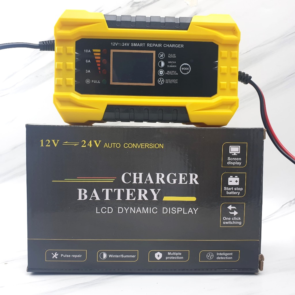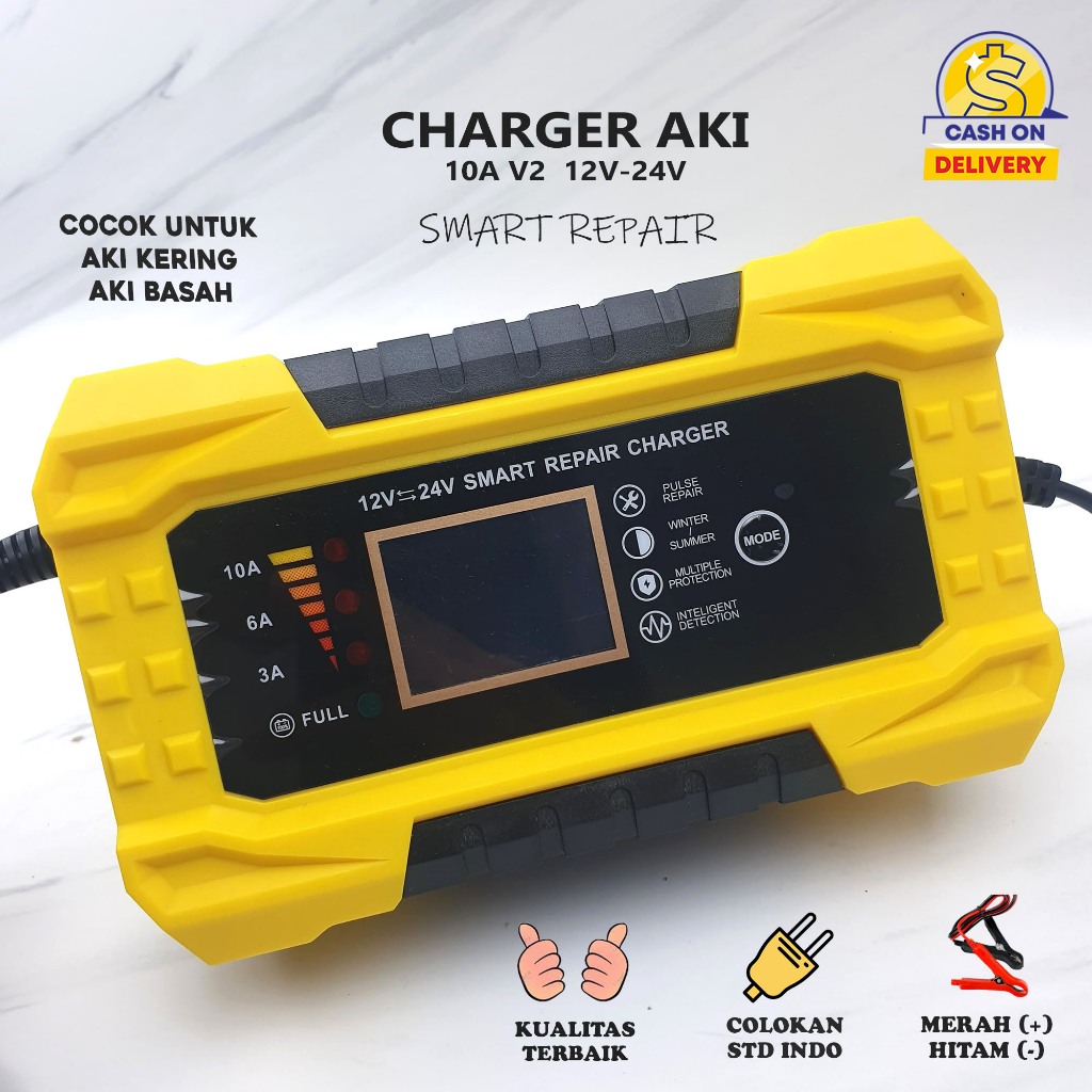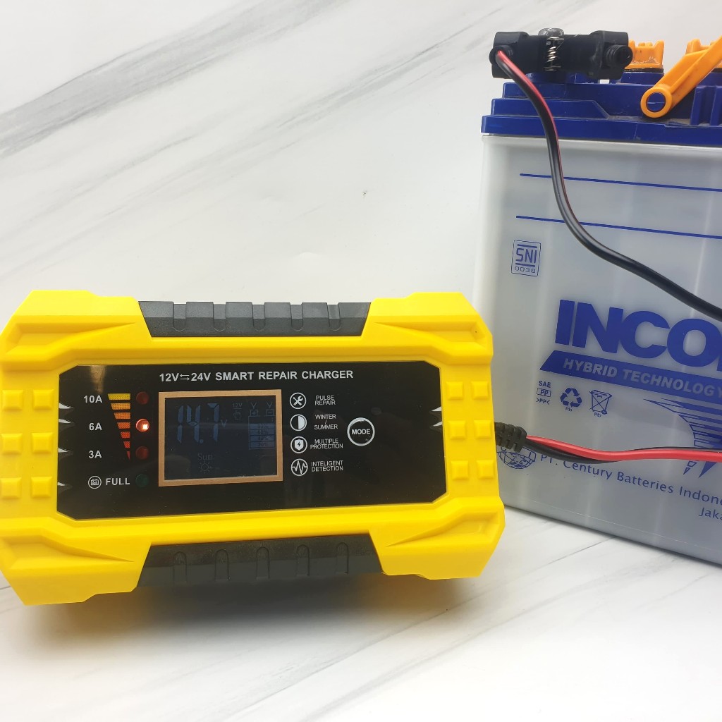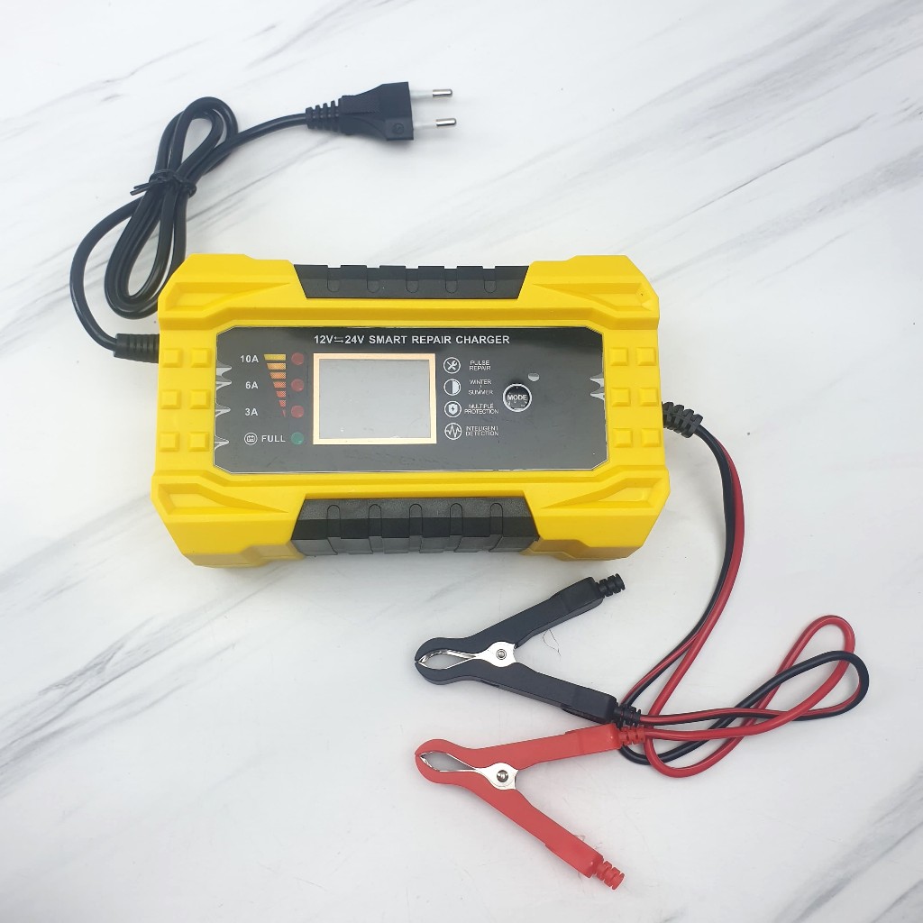 Charger Aki 10A 12V 24V Mobil Motor Auto Cut Off dengan Sistem Smart Repair