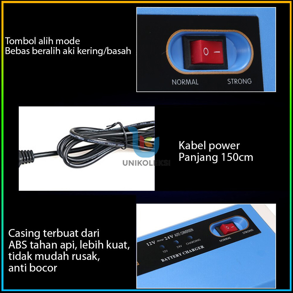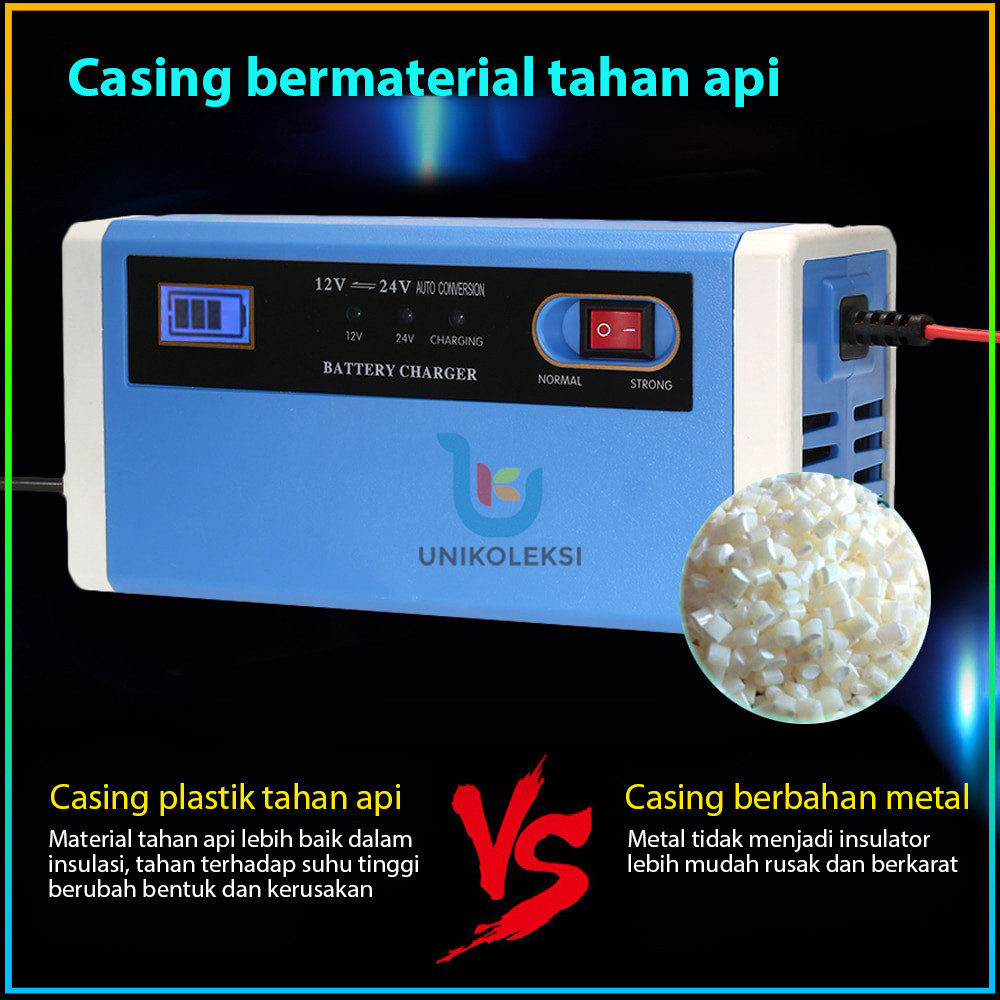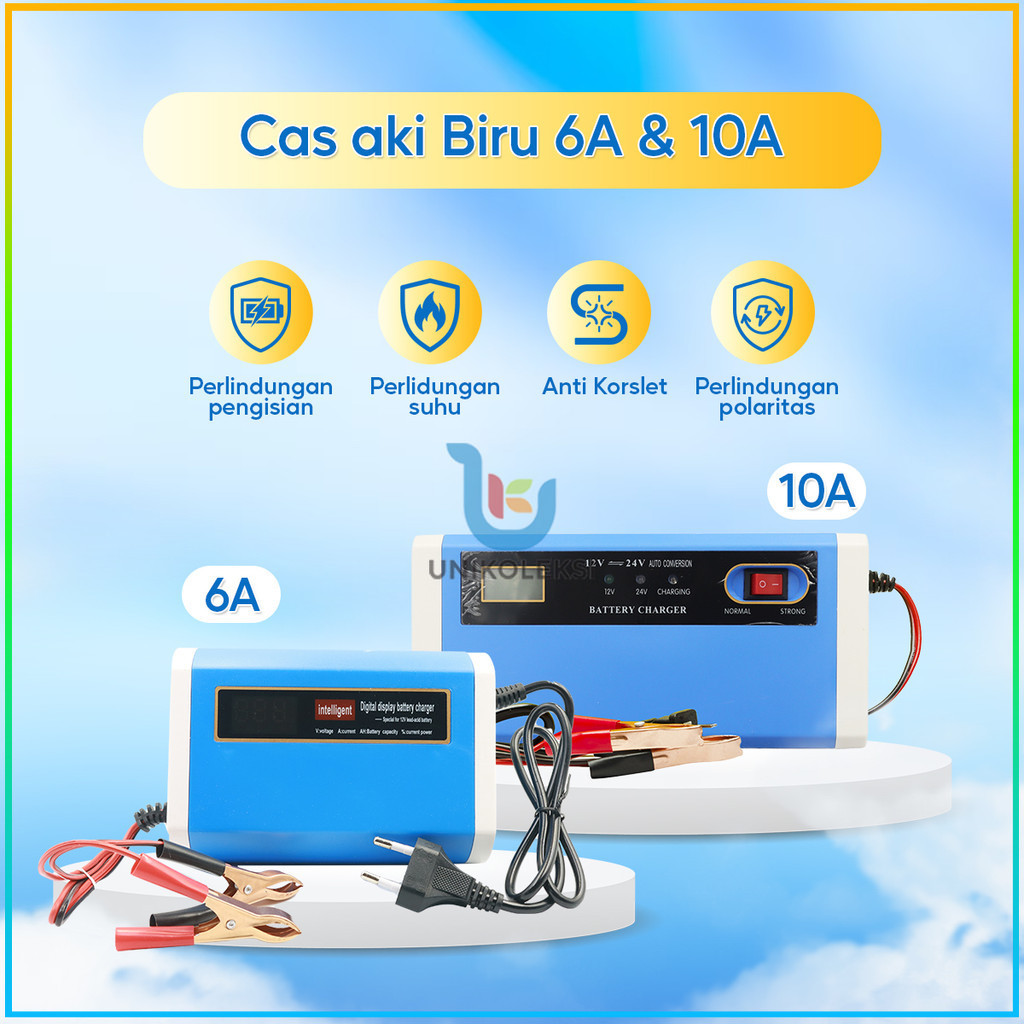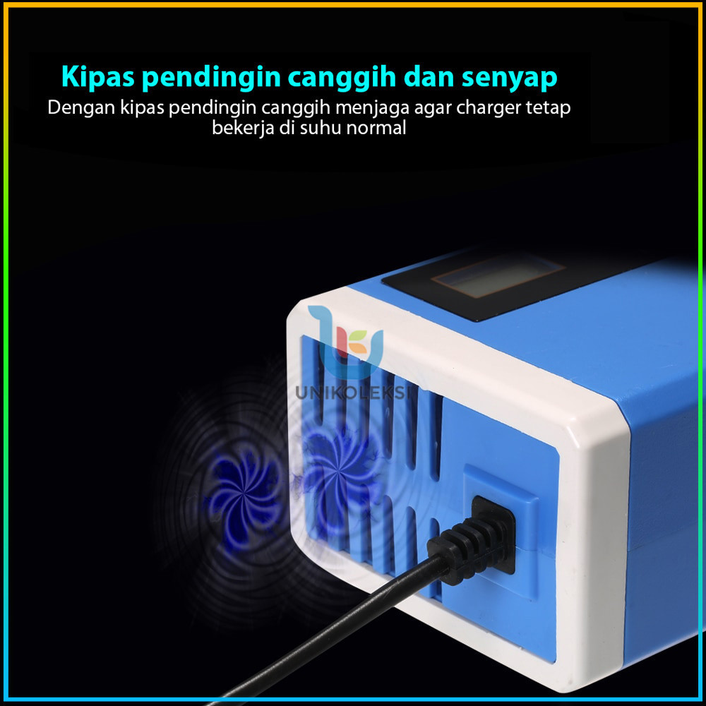 NEW Premium Charger Aki Mobil Motor Lead Acid 12-24V 10A with LCD -BLUE