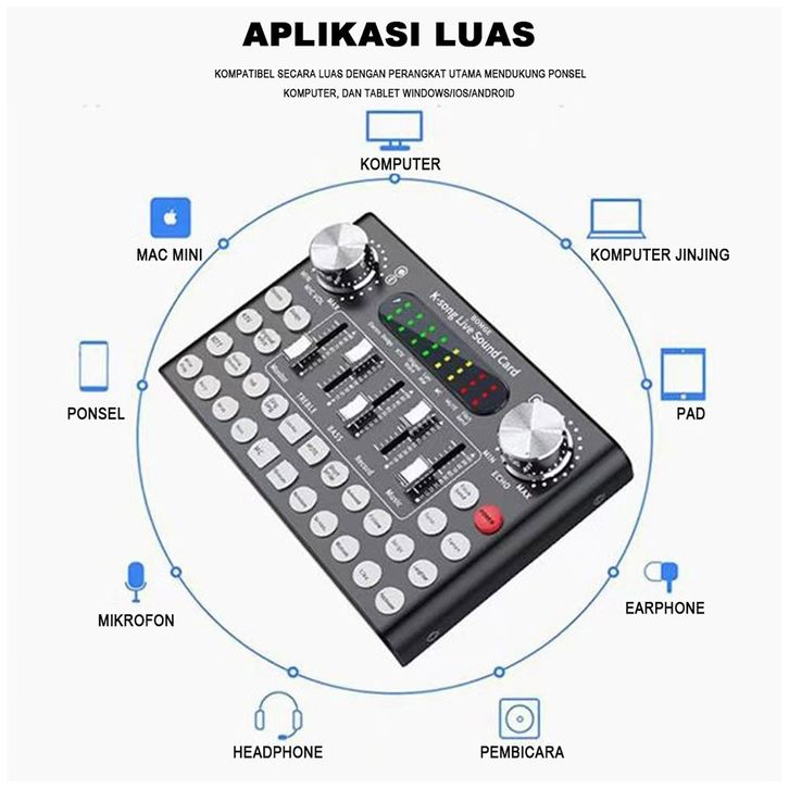 BOMGE F9 Live Sound Card Bluetooth Audio Mixer, P00Dcast Audio Mixer with RGB Colorful Buttons, All-in-One P00Dcast DJ