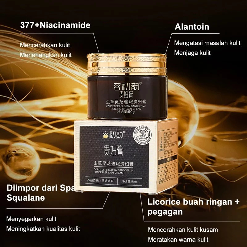 Ganoderma Cordyceps Dempul Wajah Tahan Lama Foundation Glowing 50g Cordyceps Whitening Lazy Cream 100% ORIGINAL Pemutih