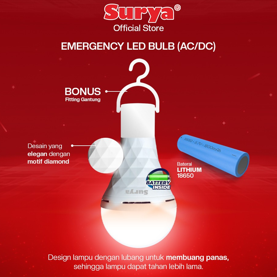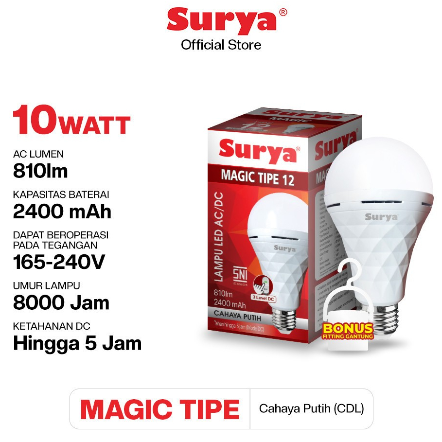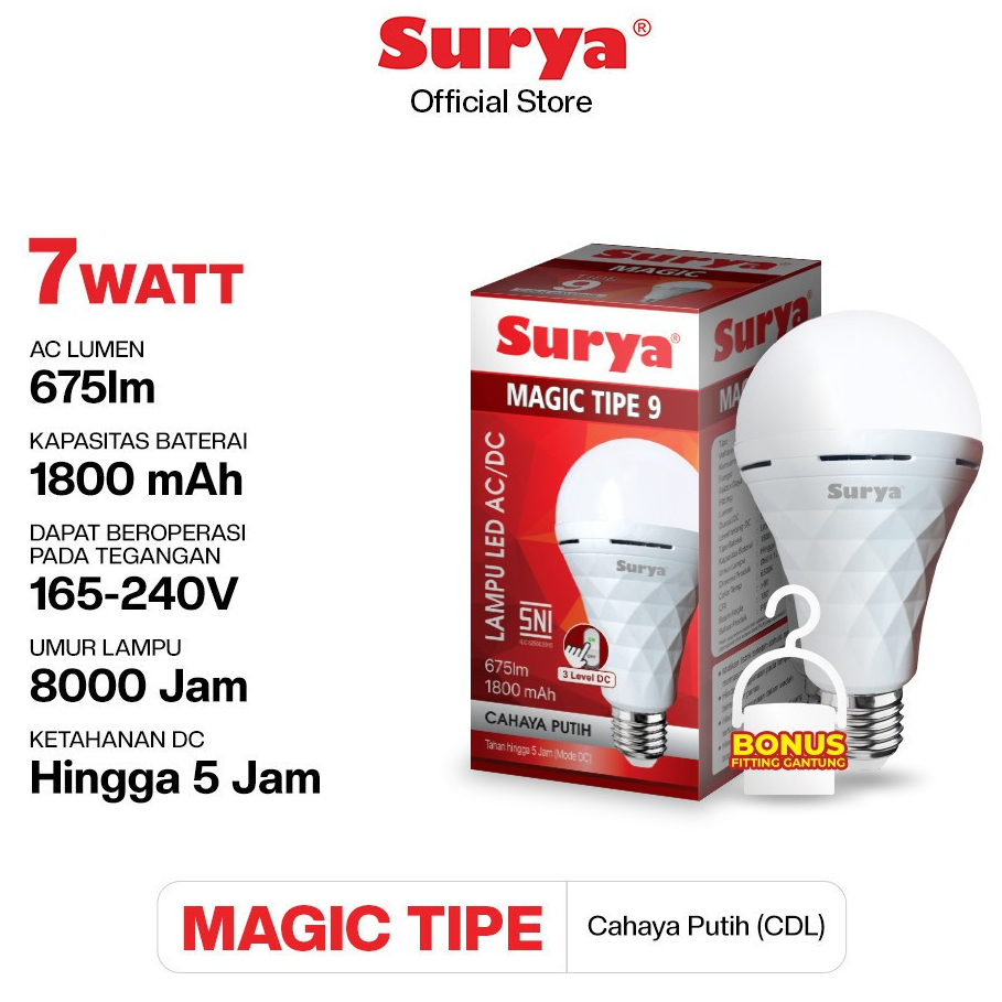 Lampu Emergency Surya Magic 9-18w Bohlam Led Cool Daylight