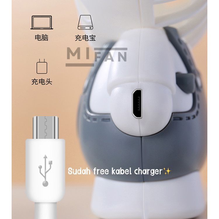 MIFAN - Kipas Angin Mini LED Lucu Kartun Rusa / Sapi Portable FREE TALI FREE KABEL - Kipas Angin Mini Genggam Handheld