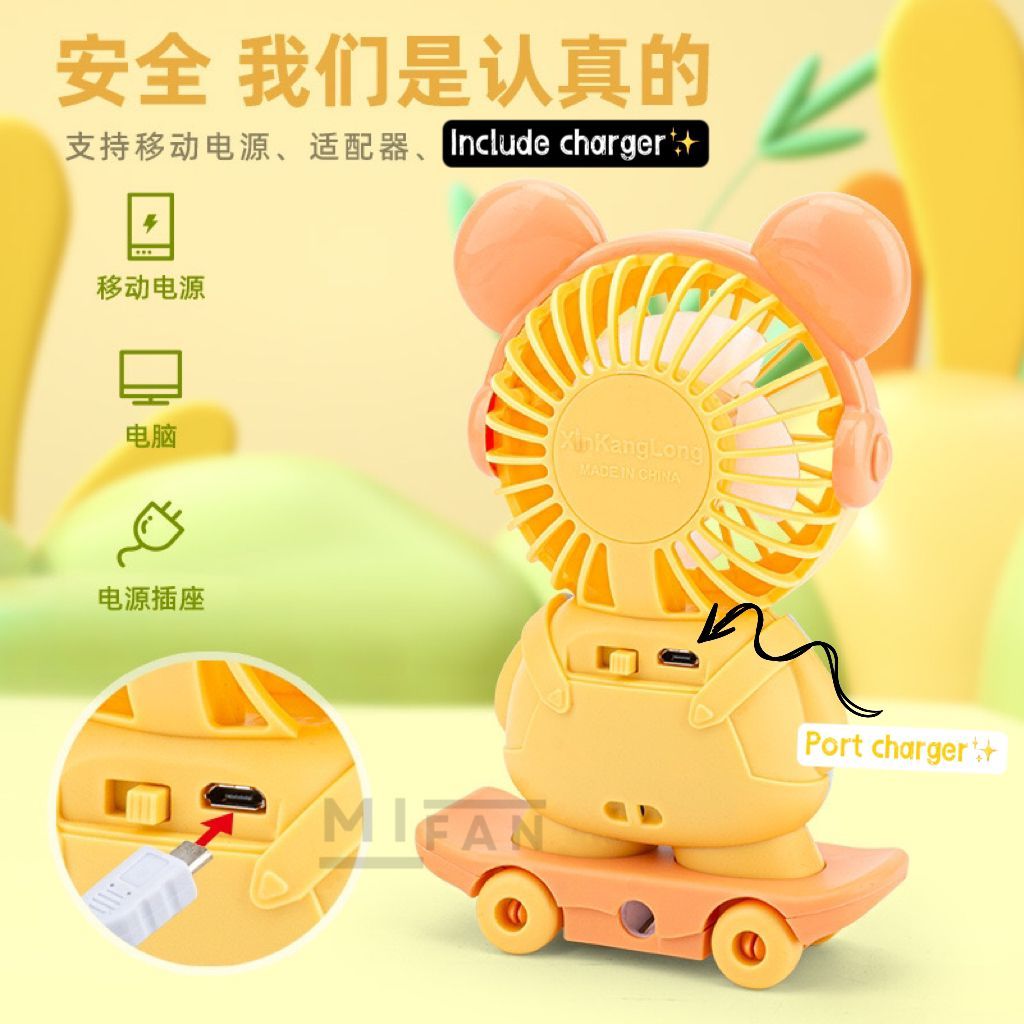 MIFAN - Kipas Mini Rautan Model Skateboard / Mini Fan Portable Handheld LED/ Kipas Mini Genggam USB