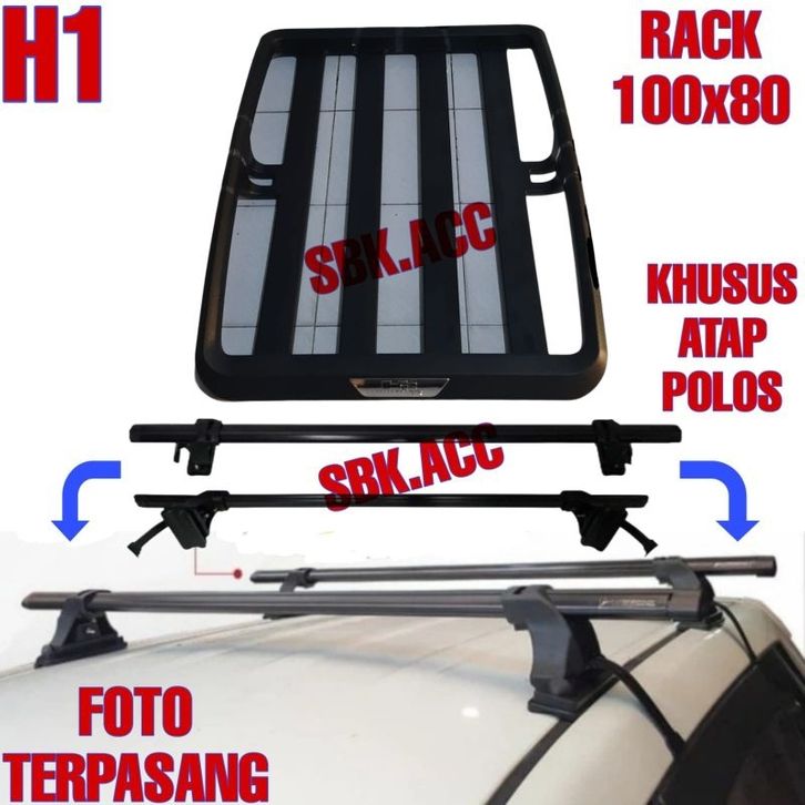 Paket Roof Rack Bagasi Atap Hummer + Crossbar Kaki Rak Jepit Body Platinum 2PC Universal