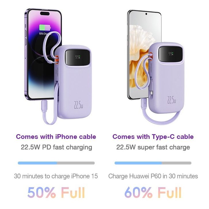 EYD Powerbank 20000mAh/22.5W Fast Charging With Double Cable Original Power Bank Type-C Lightning for iPhone and Androi