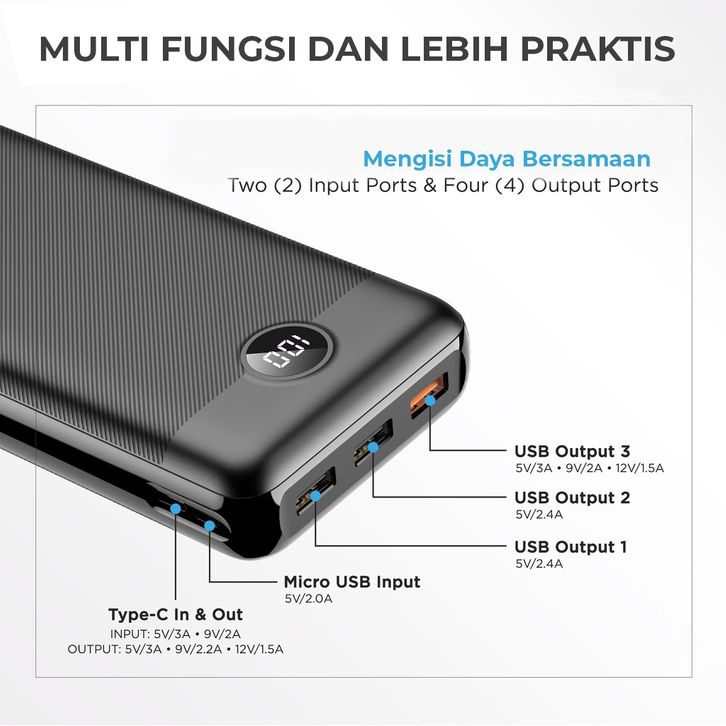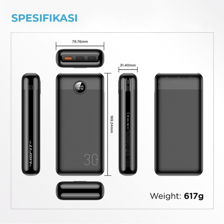 Power Bank MOFIT M38PRO 30.000mAh Real Capacity Quick Charge 20.0W QC 3.0 + PD Power Delivery