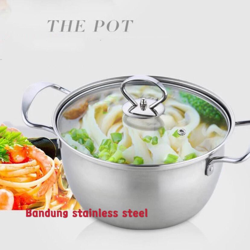 Panci Sup Soup Pot 16cm 18cm Stainless Steel Tutup Kaca Murah Kecil