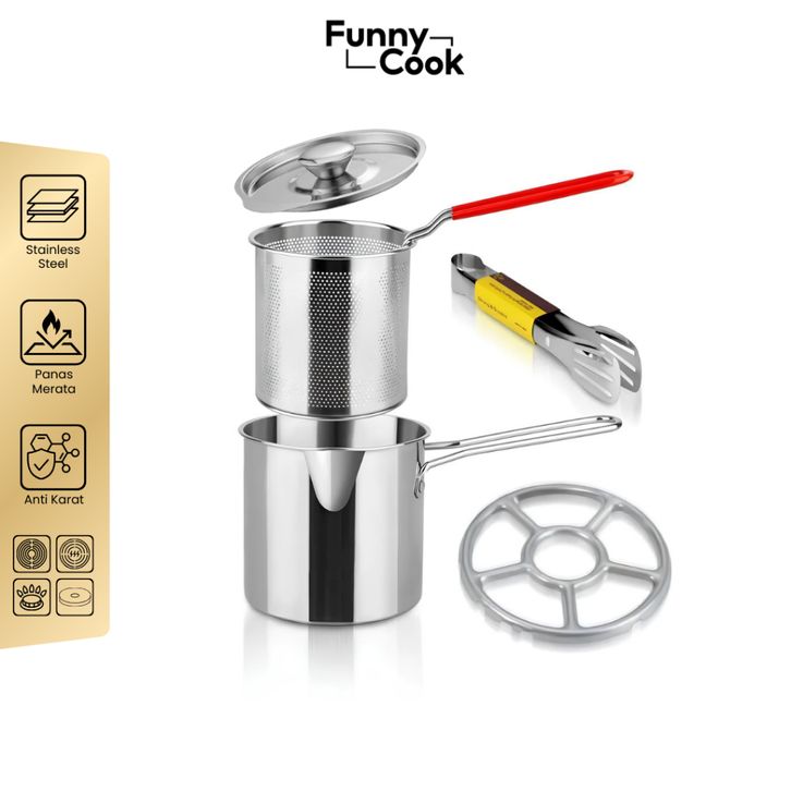 [OFFICIAL MALL] FUNNYCOOK 5 in 1 Multi Deep Fryer Panci Penggorengan Rebus Stainless Steel Saringan Capitan Tutup Klip