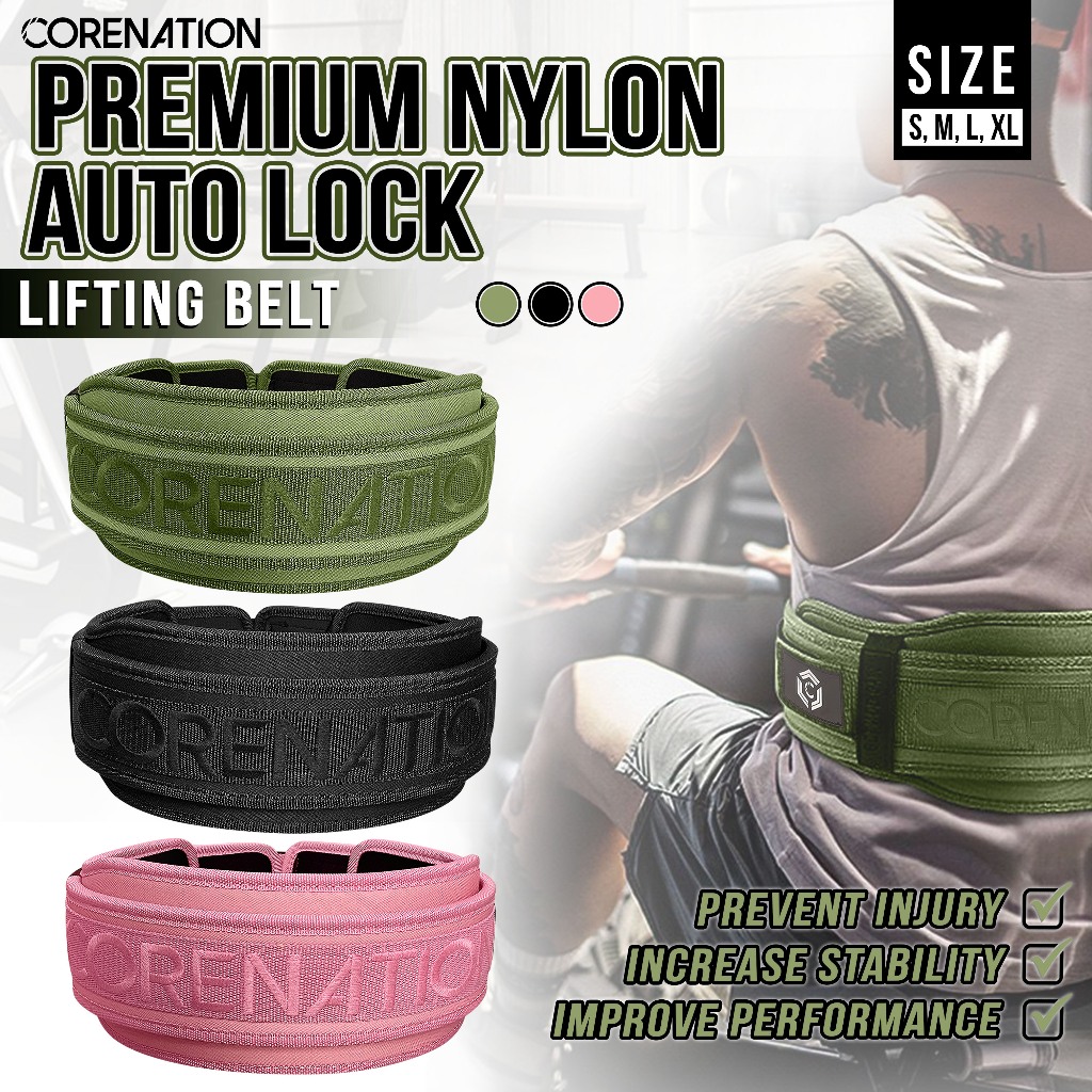 CORENATION AUTO LOCK NYLON LIFTING BELT | SABUK GYM BELT I IKAT PINGGANG FITNESS