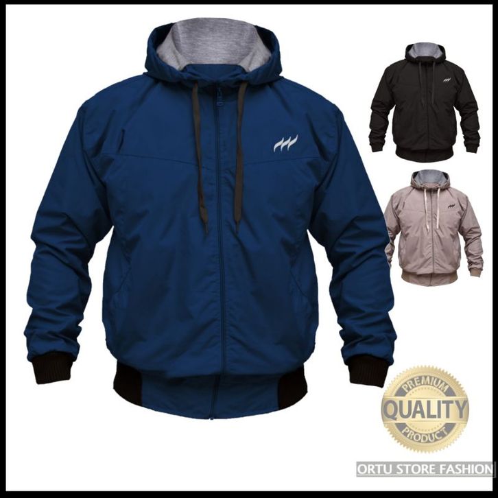 Jaket Hodie Bomber Distro JUMBO XXXL Parasut Waterproof Hoodie Casual Outdoor Pria Cowok Distro Big Size Dewasa Origina