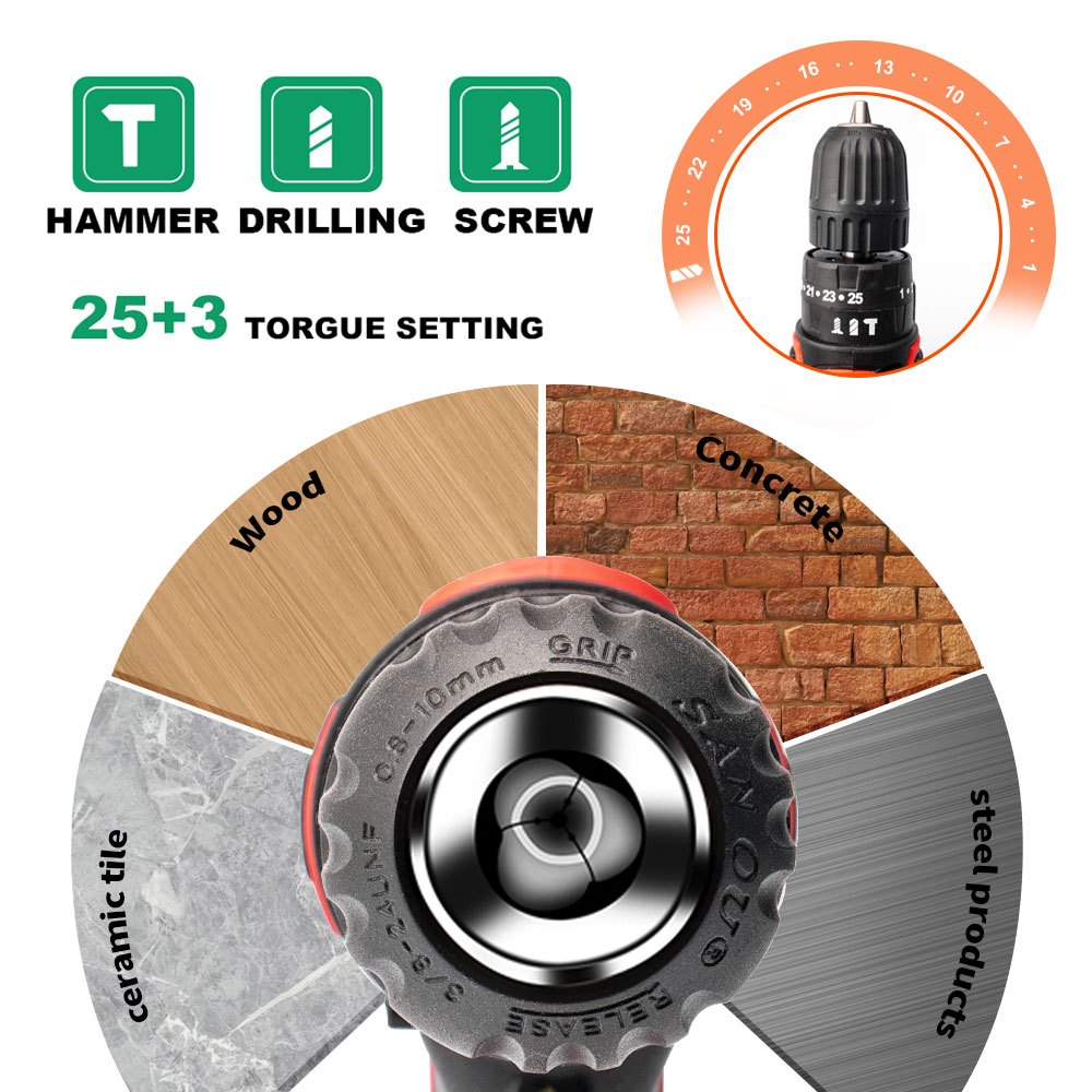JLD 36Vf Mesin Bor Baterai Bor Cas jld 2 Batre Case 25+3 Bor Cordless Impact Drill Bor Tangan Bor Baterai Murah Berkuali