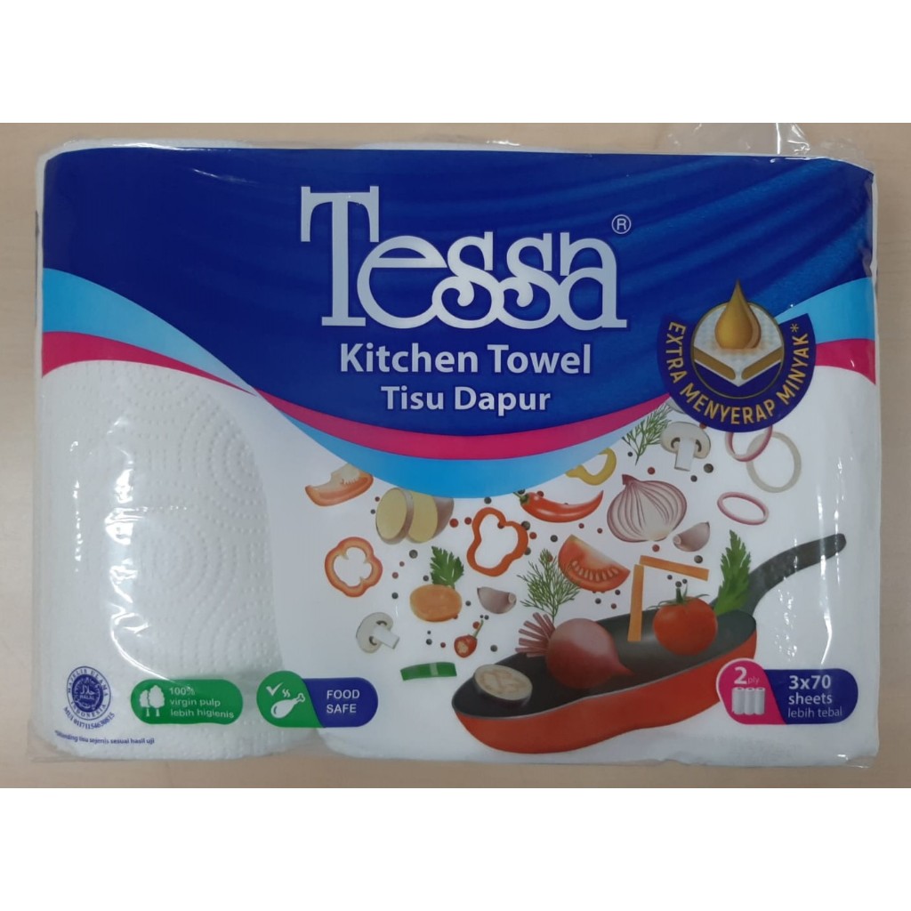 1 Pack Tissue Kitchen Towel ( Tisu Dapur ) Tessa 3 Roll x 70 Sheets x 2 Ply TTP-001 ( Warna Putih )