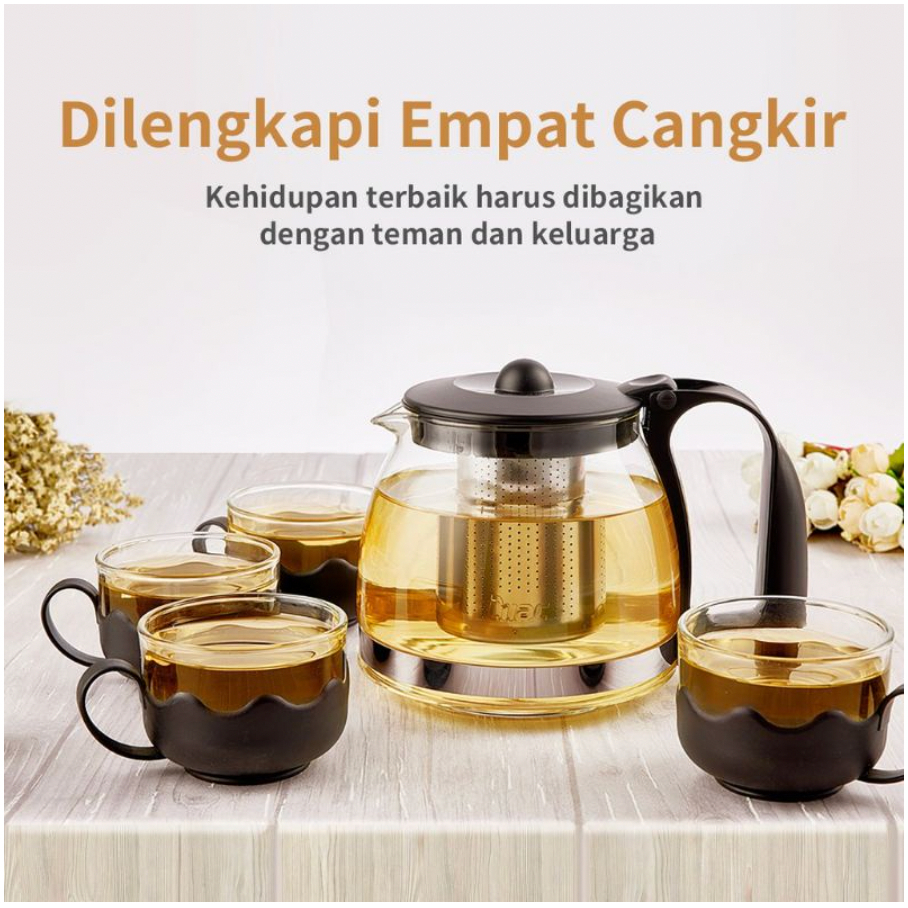 TEA POT SET ISI 5 (1 Teko + 4 Cangkir) Premium