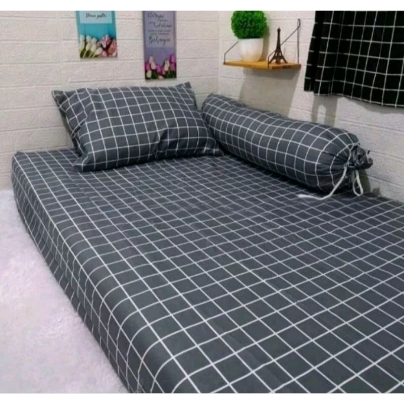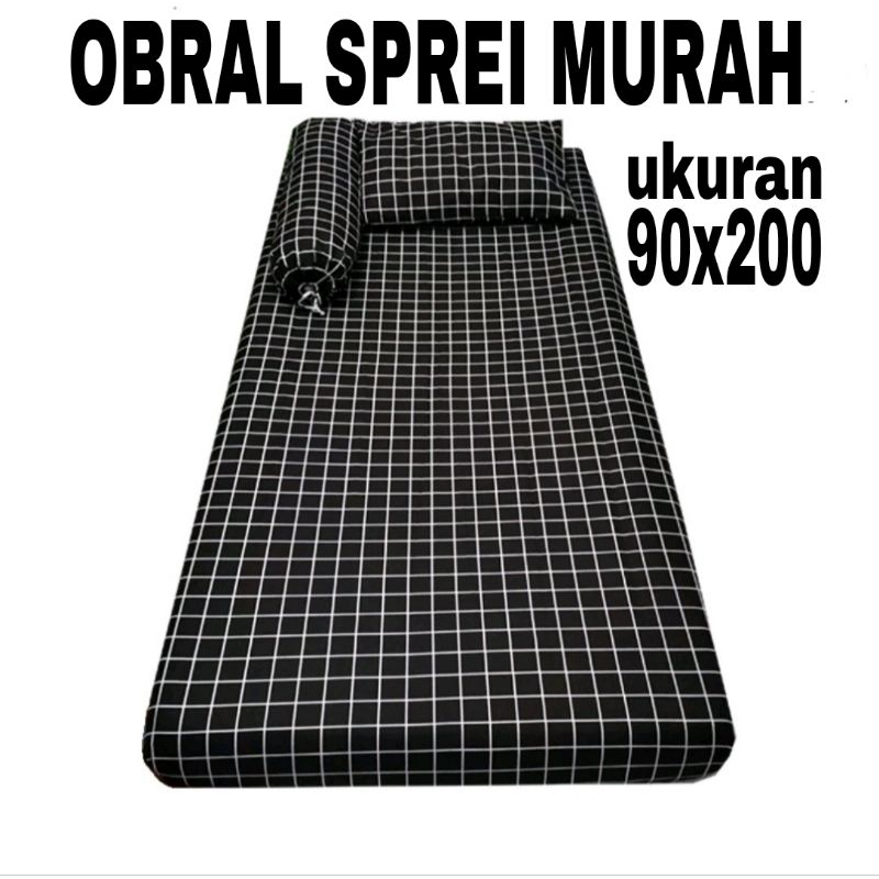 Obral sprei aesthetic murah ukuran 90x200 | sprei single | sprei kotak hitam | harga grosir | sprei kotak kotak | sprei