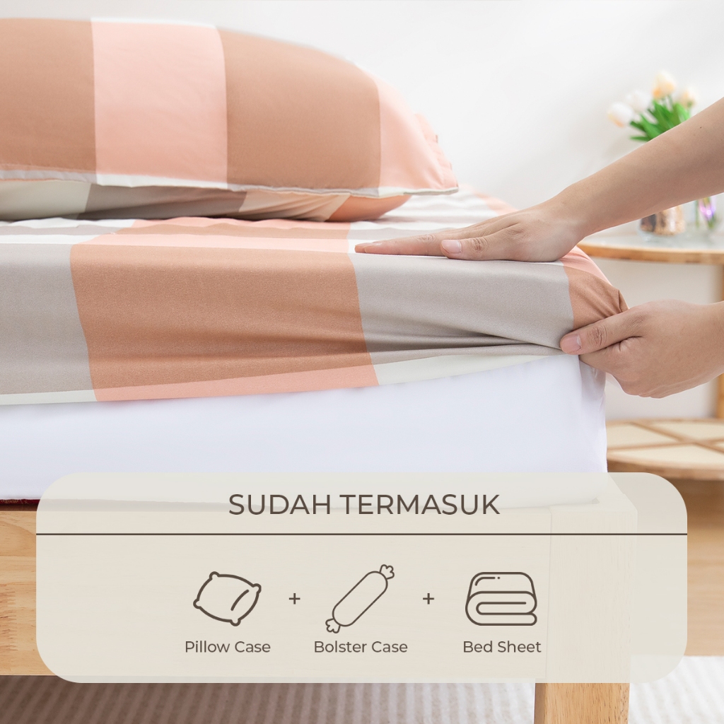 UNITWO [SPREI SET] Sprei Set Dengan Sarung Bantal Full Pressing Karet Keliling Lembut Motif Polos - Seprei Set Polos Kor