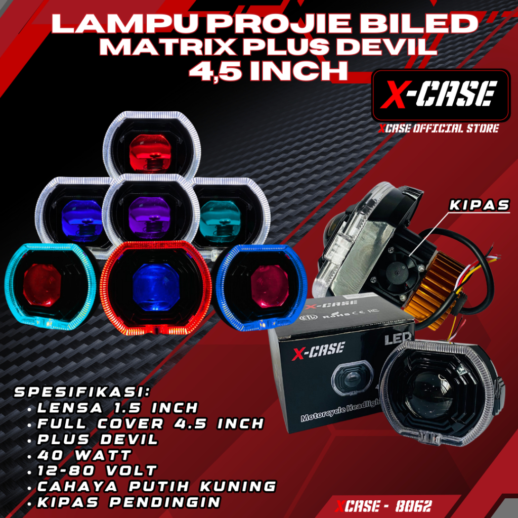 X-Case Projie Biled Matrix 4.5 Inch Body Black Plus Kipas Pendingin High Low Putih Flat Cut 8062