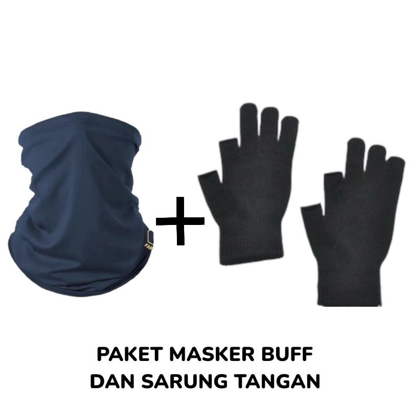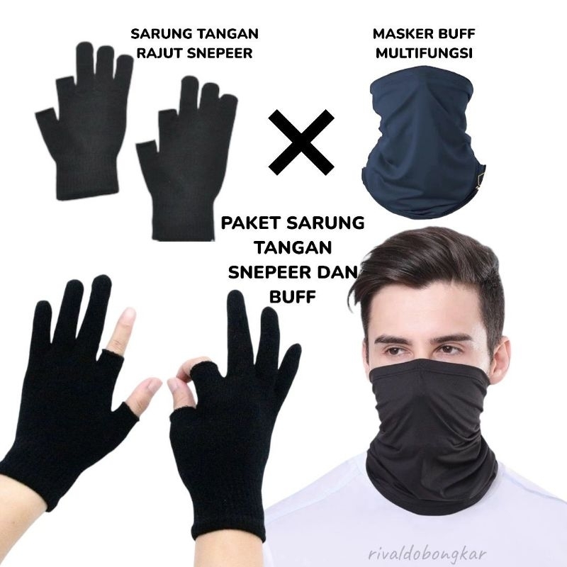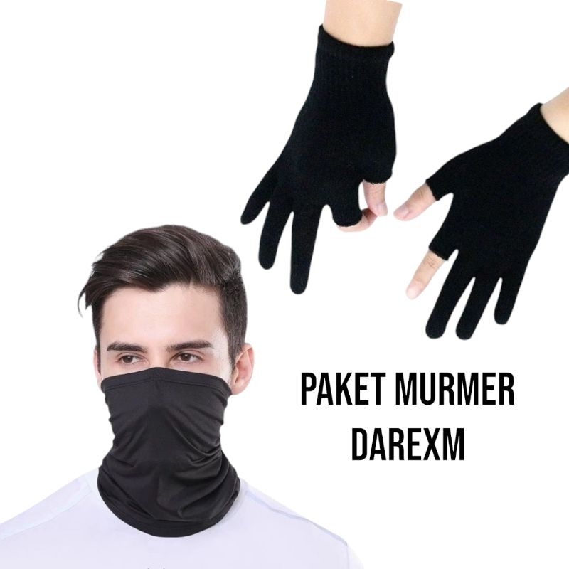 Paket Touring Motoran Sarung Tangan Sniper Dan Masker Baff Hitam Polos