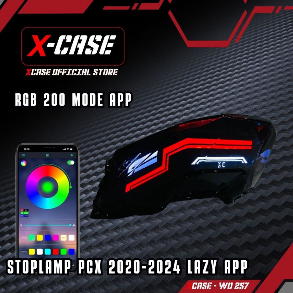 X-Case Lampu Stop Pcx Lazy Lumatail RGB 200 Mode App Plus Tombol Click Manual Tahun 2020 2024 WD 257