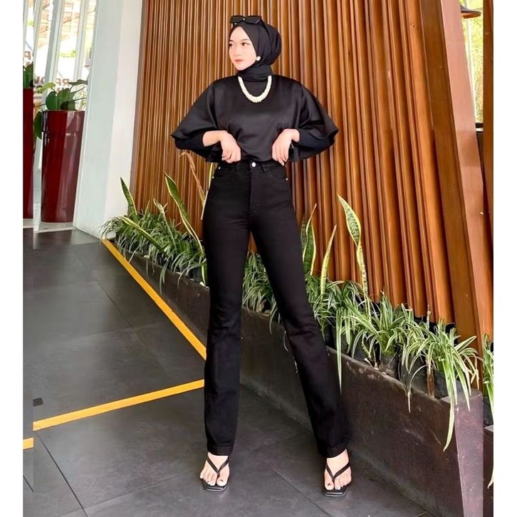 Celana Cutbray Jeans Wanita Highwaist Loose stretch Kekinian Voll 2