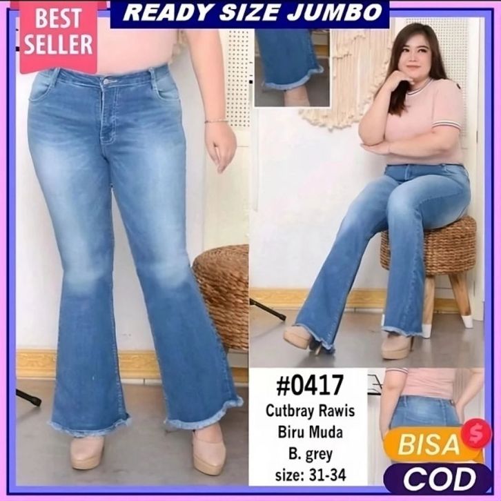 Hightwaist Cutbray jeans wanita jumbo | Celana Cutbray rawis 28-39 jumbo | Bahan soft jeans melar strech Premium Quality
