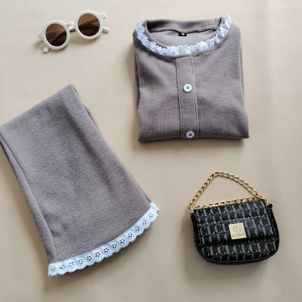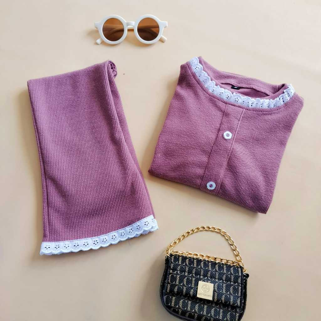 JENNIE top & Flare with Lace - Fashion One Set Anak Perempuan Usia 2-12 tahun Bahan Knit Premium