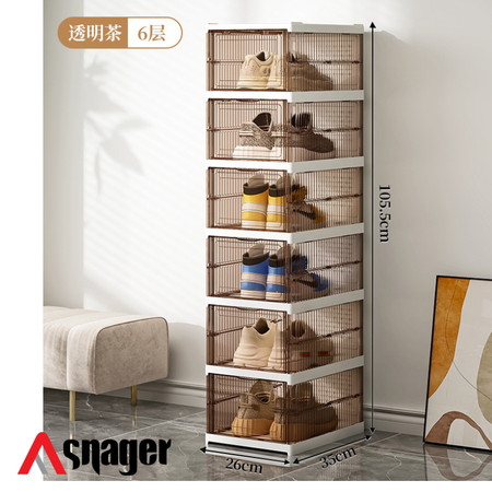 Snager Rak Sepatu Lipat Plastik Transparan Penyimpanan Multifungsi Tertutup Anti Debu Aesthetic 6 Susun Bertingkat