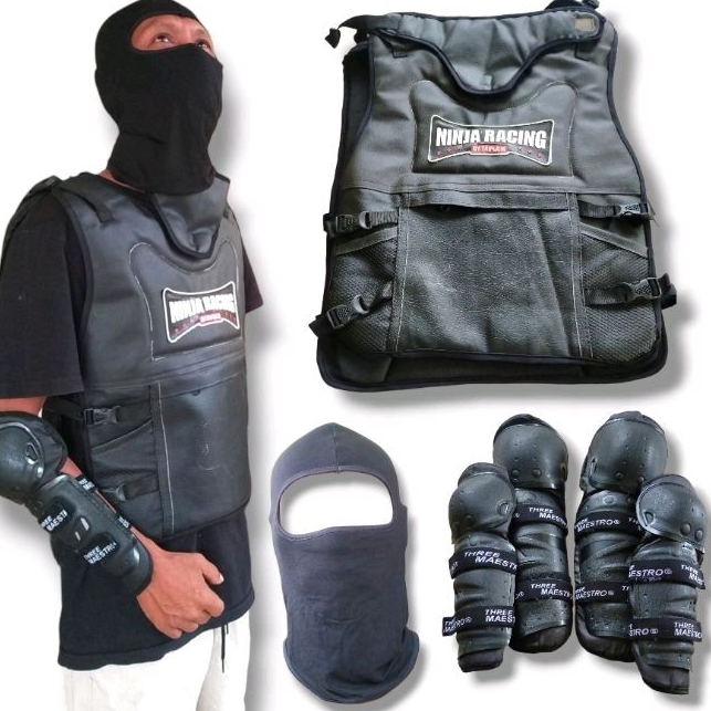 Deker Pelindung Pengendara Motor Balaclava dan Body Protektor || Deker motor pelindung lutut Deker Trabas || Deker Touring Masker Ninja Dan Rompi pelindung dada |