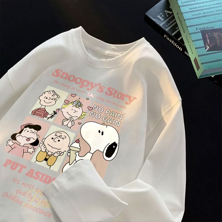 Tshirt Kaos Oversize Lengan Panjang Wanita | Pola Kartun Snoopy | Oversize Lucu | 100% Cotton