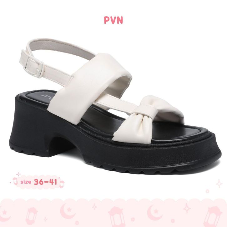 PVN Luna Sandal Tali Wanita Hitam Krem 389