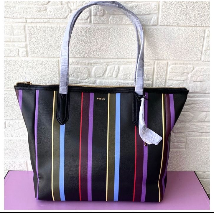 Tas Wanita Branded Fossill Sydney Stripe Tote Black - Original