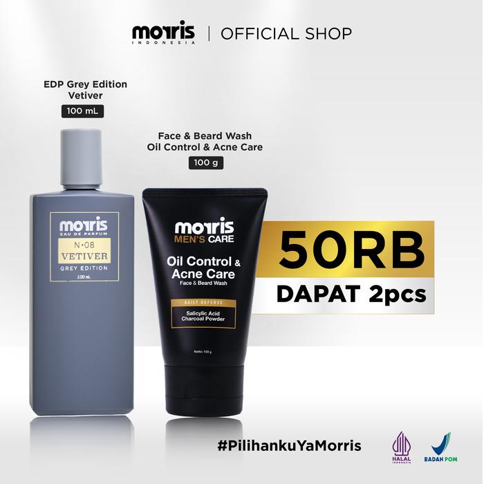 Paket Pria Ganteng & Wangi Sabun Cuci Muka Wajah Facial Wash Oil Control & Acne Care + Perfume Cowok Grey Edition 100 ml