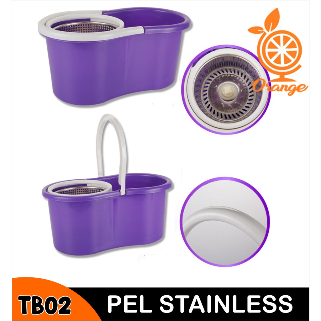 [Mall] Alat Pel Lantai Praktis Tanpa Peresspin Mop 360 Ember Pengering Stainlees Spin Mop Dapat Kain 2