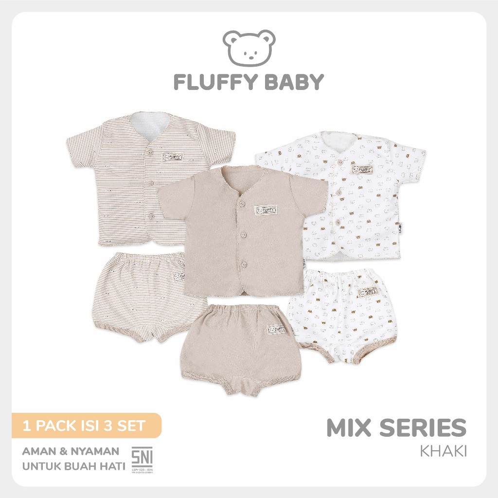 FLUFFY SETELAN PENDEK NECI KHAKI (ISI 3PASANG) SDDAN KKI NB