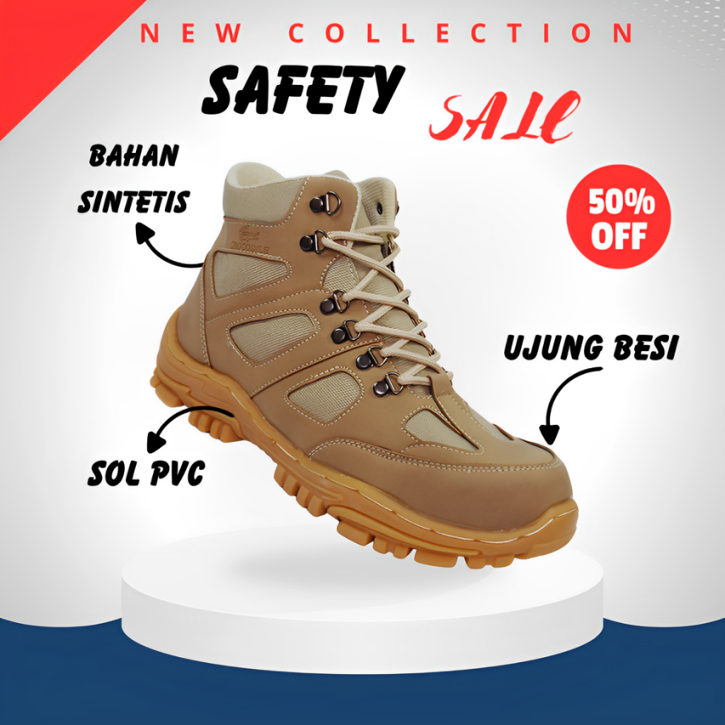 Sepatu Safety Pria Boots Ujung Besi Kerja Lapangan Proyek Tracking Touring Hiking Kitchen - Septy Shoes Boot - Sepatu Ke