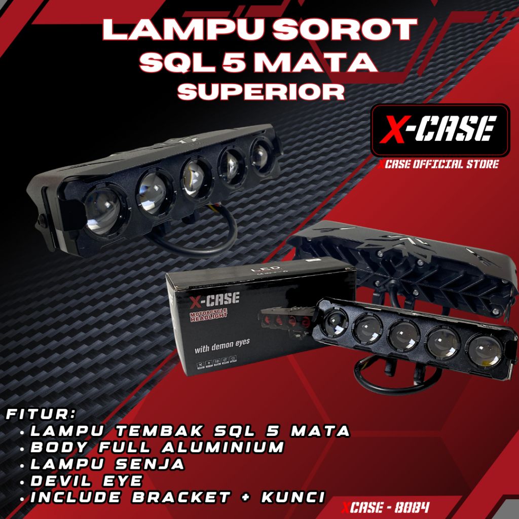 X-Case Lampu Tembak Sql 5 Mata Devil Eye Superior Quality All Weather Jauh Dekat Putih Kuning 8084