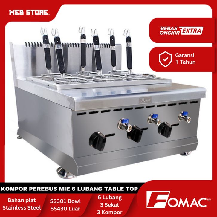 Kompor Mie Ayam 6 Lubang Dandang Mie Pasta 6 Lobang Gas Noodle Cooker Table Top FOMAC PCD-616R